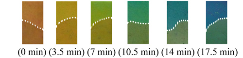 等离子体清洗后复合薄膜颜色的变化(虚线以下为浸水部分)