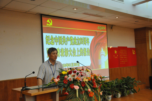 6月30日上午,等离子体所在四号楼召开纪念建党89周年暨“七一”表彰大会。大会表彰了先进党支部、优秀党务工作者和优秀党员。等离子体所党委书记张晓东作大会报告。