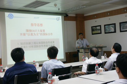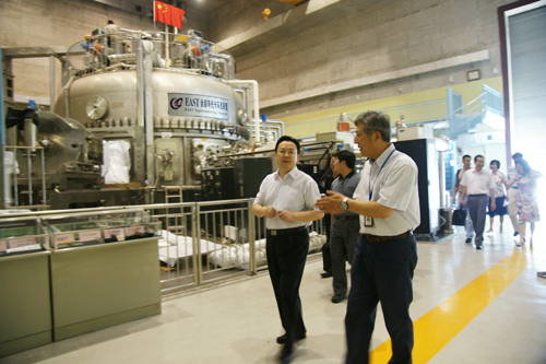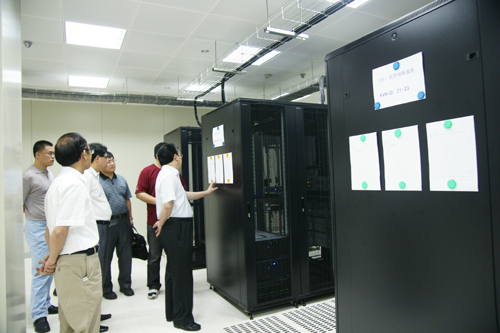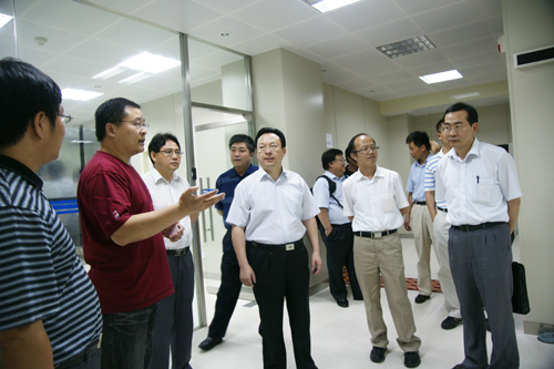 在研究院调研期间,谭铁牛一行先后听取了等离子体所党委书记张晓东关于依托EAST国家大科学工程装置卓有成效地开展国际合作的情况汇报、现场考察了聚变研究国际合作重要平台的EAST装置。随后,谭铁牛一行又来到合肥研究院中心机房,详细了解作为e-science 重要支撑的信息化设施工作进展。信息中心主任李晓风研究员向谭铁牛及院信息中心有关领导简要介绍了“十一五”期间,合肥研究院围绕院“优化三大环境,构建五大平台,完善三大体系”目标开展的相关工作和软硬件建设情况。