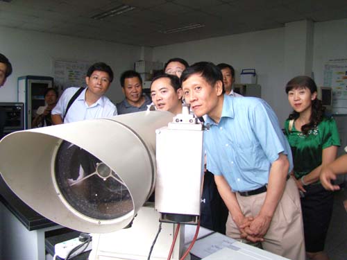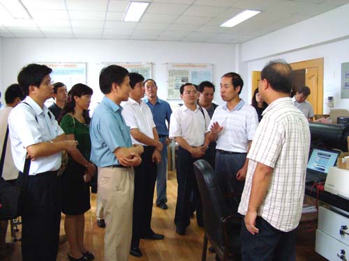 考察团到安光所重点考察了环境光学中心。环境光学中心的空气质量监测子站是安光所应用范围最广、产业化运作最早的科研成果,该成果已成功地为北京奥运会、上海世博会提供高精服务,其覆盖全国的监测站点为天气预报、环境监测提供详细广泛的监测数据。它的科研成果产业化是通过和企业合作实现的,合作企业安徽铜陵蓝盾光电子有限公司在安光所成熟技术、配套技术支持的基础上通过市场运作、仪器工业化装配使该成果打破国际垄断、覆盖全国。该中心随后将烟气在线监测系统交付给安徽铜陵蓝盾光电子有限公司进行产业化运作。安全性很高、操作便利、无人值守的工业有毒废气激光在线监测技术及系统、分布式无源光纤瓦斯传感器系统、天然气管道泄露监测系统则处于完成成果研发,寻找合作企业的阶段。
