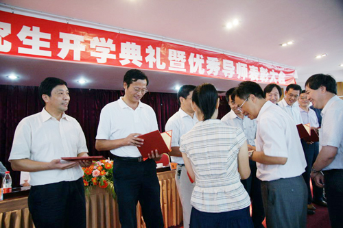 随后,合肥研究院副院长李建刚宣读了《关于表彰2010年度合肥物质科学研究院优秀研究生导师的决定》。匡光力和蔡伟平为获得表彰的王祥科、李广海、张为俊、张立德、孟国文、高晓明、储焰南、吴跃进、方晓东、李建刚、孙玉平等11位优秀研究生导师颁发了获奖证书和奖金。2010级研究生向受到表彰的导师们献上鲜花,表示祝贺,全场响起一次次热烈的掌声。