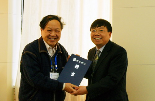 刘鸣华代表科学院向科技委员会主任甘子钊院士颁发聘书