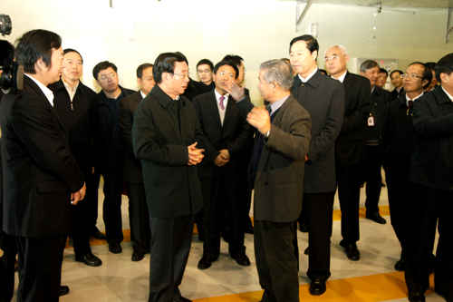 听取汇报后,贺国强对等离子体所走艰苦创业、自主创新的科研道路给予了充分肯定,为中国人能够在世界聚变领域表现突出而感到骄傲。贺国强十分关心EAST及聚变研究工作的发展计划,询问科研人员“对今后的发展有什么想法?” “技术上有没有问题?”李建刚表示,现在国家发展很快,能源问题十分紧迫,希望在国家的大力支持下,在未来5-10年里,通过科学家们的不懈努力和艰苦奋斗,解决一系列技术难题,实现聚变能应用的重大突破。