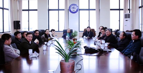 中国科技大学党委书记许武、校长侯建国、副校长朱长飞和相关院系负责人与合肥研究院院长王英俭、党委书记兼强磁场中心主任匡光力,强磁场中心孙玉平副主任、刘小宁副主任、田长麟副主任、首席专家高秉钧研究员、首席科学家张裕恒院士等出席座谈会。
