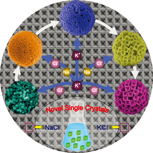 氯化钠俗称食盐,是人类接触最早并被广泛使用的水溶性盐,其结晶形态是高度对称的完美立方体结构。长期以来,在经典的教科书和结晶学的理论中,都把它的结构作为一个最为典型的高对称面心立方点阵的例子来描述。随着纳米技术的发展,科研工作者已经能合成出水不溶性材料的各种结晶形态、纳米结构和组装构造,由此发现了很多有趣的新纳米特性。然而,改变水溶性无机晶体的生长方式一直没有寻找到合适的途径。近来,智能所研究人员利用简单的亚稳态水滴成功改变了氯化钠的生长习性,构造出斗状单晶和空心球状组装体。这一发现为合成水溶性无机、有机和生物结晶材料开拓了新途径。《德国应用化学》的编辑认为这是一项非常有趣的工作,评审人认为它不但会丰富教科书的内容,也会吸引更多的化学和材料科研工作者来深入探索这一领域。