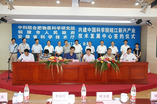 7月15日,合肥研究院、铜陵市政府、安徽省科技厅共建中科院皖江新兴产业技术发展中心签约仪式在科学岛举行。