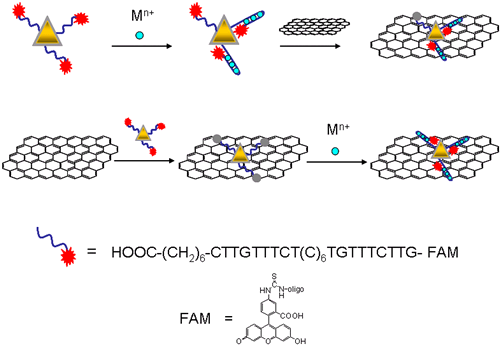 石墨烯/纳米金的“淬灭/增强荧光”机制检测汞重金属示意