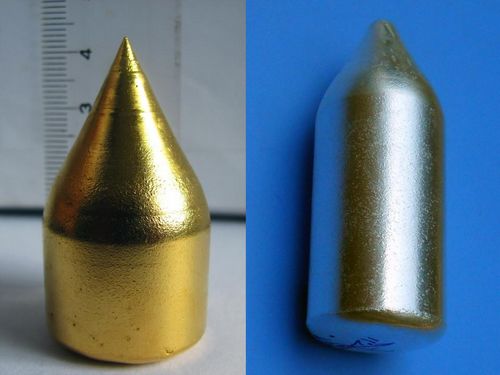 继成功生长出取向可控的高纯金属铝、铜、镍单晶晶体后,合肥研究院固体物理所金属晶体系列近期又增加了新成员。固体所晶体生长能力又取得新突破,固体所蒋卫斌博士等科研人员成功生长出直径两英寸的纯金、纯银单晶,这进一步丰富了可生长晶体种类。