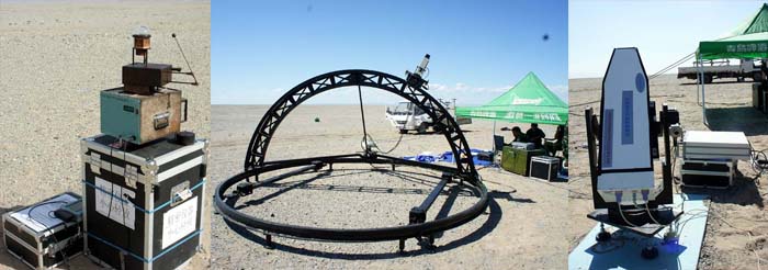 安光所科研人员携带了三台/套观测设备(均受国家卫星气象中心委托、自主研制而成)参加本次试验。其中双向反射分布函数测量系统自2007年研制完成以来,已多次参与联合试验。测试地点包括内蒙古、新疆、甘肃等地,其中不乏人迹罕至的荒漠地带,条件极为艰苦,参试人员和测试仪器都经受了严峻的考验并全部顺利完成了测试任务。参试的另外两台设备则由安光所光学遥感中心采用最新的技术方案研制完成,突出了高精度和高可靠性——试验期间,充分经受了高温、强沙尘和长时间连续工作的考验,观测、获取了场区的绝对入射辐照度、大气光学厚度、入射光漫/总比等参数,初步验证了其设计的合理性、先进性和可靠性。