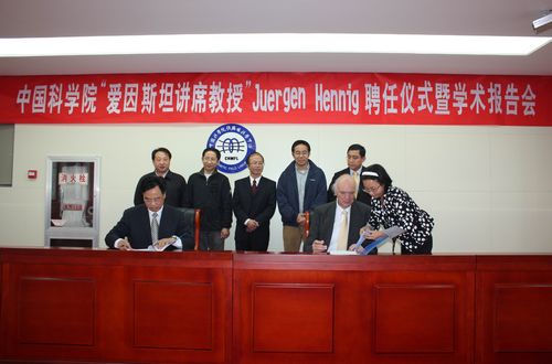 “爱因斯坦讲席教授计划”是中国科学院于2004年推出的人才培养的重要举措之一,旨在通过邀请国际著名科学家来访讲学及选派优秀科研骨干进行学术回访等形式,加强研究所科研人员同世界顶尖科学家的联系与交流。“爱因斯坦讲席教授”计划每年邀请20-30名活跃在科学前沿的世界顶尖科学家进行1~2周的学术访问。这些科学家包括具有潜力获得世界顶级科学奖(如诺贝尔奖、菲尔茨奖、沃尔夫数学奖、图灵奖、泰勒奖等)的科学家以及尚活跃在科学前沿的获奖者。 Juergen Hennig教授是中科院合肥研究院锲而不舍连续申报多年、迄今为止由强磁场中心申报成功唯一入选的一个爱因斯坦讲席教授。