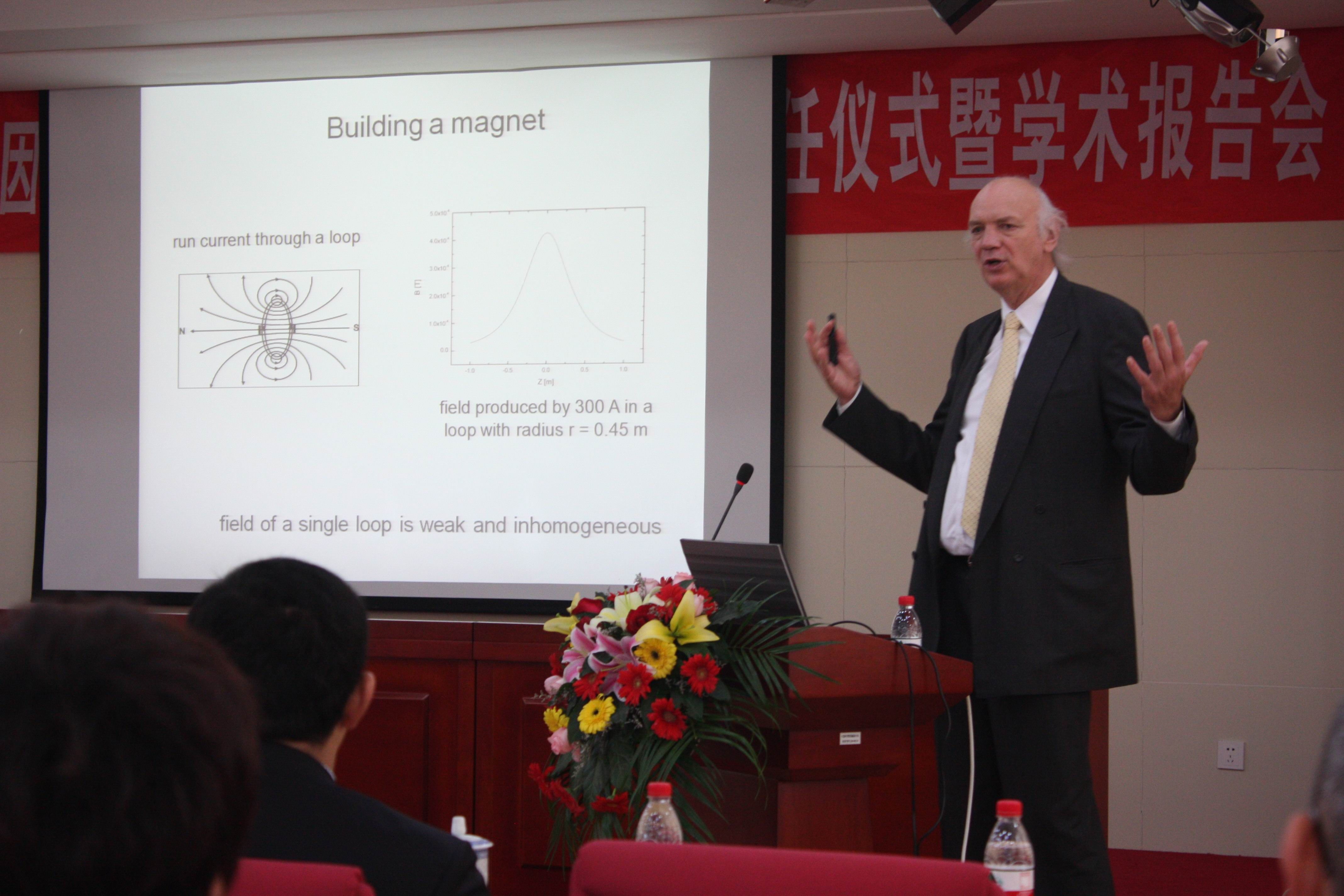 生物磁共振成像所具有的独特技术优势使其在生物成像、认知神经科学、临床医学等重要科学领域得到了广泛的重视及应用。随着物理手段及电子技术的进步,高场下磁共振成像的研究正成为磁共振成像研究的重要方向。Hennig教授是磁共振成像领域的先驱者之一,在该领域享有崇高的声誉。在过去25年的研究中,他领导的研究小组开发了一系列领先的磁共振成像技术手段,其中包括快速回波成像、磁脑电图、非线性成像技术等。Hennig教授在中科院强磁场中心作了题为“极高场下磁共振成像的挑战与机遇”的报告,介绍了磁共振成像在极高磁场下的最新技术方法,讨论极高磁场下磁共振成像的优势及技术挑战以及最新研究成果等; Hennig教授在中国科技大学作了题为“磁共振成像:生命的视野”的专题讲座。Hennig教授以通俗易懂的科普语言,向听众介绍了磁共振成像在认知、神经科学、临床医学等生命科学中的应用前景,磁共振成像的新技术方法与手段以及其最新研究进展。来自中科院合肥物质科学研究院强磁场科学中心、技术生物与农业工程研究所、医学物理与技术中心、安徽医科大学以及中国科技大学相关学科的科研人员、医生、研究生和部分高年级本科生聆听了二场学术报告会。报告会上,听众纷纷提问,向大师请教,现场气氛十分活跃。Hennig教授不但学识渊博、幽默风趣,一席带德国口音的汉语开场白更博得了满场喝彩,拉近了台上与台下、德国知名科学家与普通中国听众的距离。