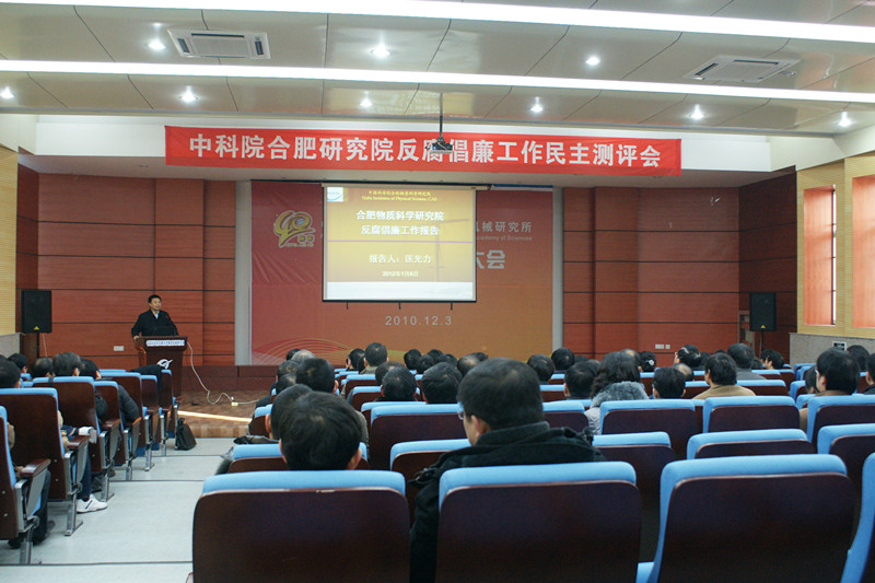 1月6日上午,合肥研究院举行反腐倡廉工作民主测评会,孙中和主持会议并介绍了中科院监审局开展研究所反腐倡廉量化评价工作的要求和具体部署情况。研究院党委书记匡光力代表研究院党政领导班子作《研究院反腐倡廉工作报告》,汇报了研究院近年来反腐倡廉工作的开展情况:研究院每年都召开党政领导班子会议或党风廉政建设领导小组会议,学习贯彻中纪委全会精神和中科院党风廉政建设工作会议、院纪检监察审计工作会议精神,研究讨论年度反腐倡廉工作计划和任务分解,部署相关工作;研究院纪委也召开有关会议,传达贯彻落实上级有关反腐倡廉工作会议精神;研究院制定了《建立健全惩治和预防腐败体系2008-2012年工作规划》;下发了《研究院党风廉政建设责任制的实施办法》,在全研究院自上而下逐级签订了党风廉政建设责任书;在基建、课题经费、采购等重点领域建立了一整套内控制度;实行了“院务公开”、认真贯彻执行领导班子议事决策规则和有关领导干部廉洁自律规定,扎实开展了反腐倡廉和科研道德宣传教育;认真核查举报线索等。