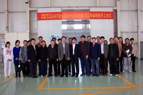 4月9日,强磁场中心40T混合磁体外超导线圈CICC导体研制开工仪式在等离子体所ITER导体生产线大厅举行,这标志着外超导线圈及其导体制作正式拉开帷幕。
