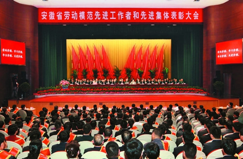 安徽省劳动模范、先进工作者和先进集体表彰大会旨在安徽省大力弘扬劳模精神,充分发挥工人阶级主力军作用,把广大群众劳动激情、创造智慧、潜在力量充分发挥出来,凝聚起来,积极投身兴皖富民大业,在前进道路上不断创造新的业绩。本次大会授予434人“安徽省劳动模范”、245人“安徽省先进工作者”、99个单位“安徽省先进集体”荣誉称号。