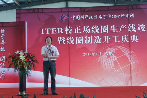 合肥研究院院长王英俭出席庆典并致欢迎辞。等离子体所所长李建刚表示,等离子体所有着一支特别能战斗、让人放心的科研团队,将迎接挑战,认真实施,努力完成好ITER校正场线圈采购包任务,他还憧憬着中国的首座聚变电站早日开工。