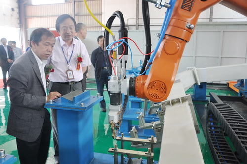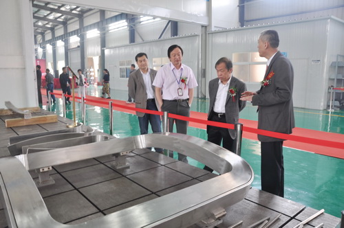 出席庆典仪式的领导和专家还参观了ITER 校正场线圈生产车间,并在进行智能化操作的焊接机器人前仔细观摩。科技部ITER中心技术总监潘传红、项目工程处副处长王敏、李鸿炜博士,合肥研究院综合办公室主任程艳,等离子体所三室主任武玉、计财办副主任江涛以及各子供应商的专家和代表等出席了庆典。