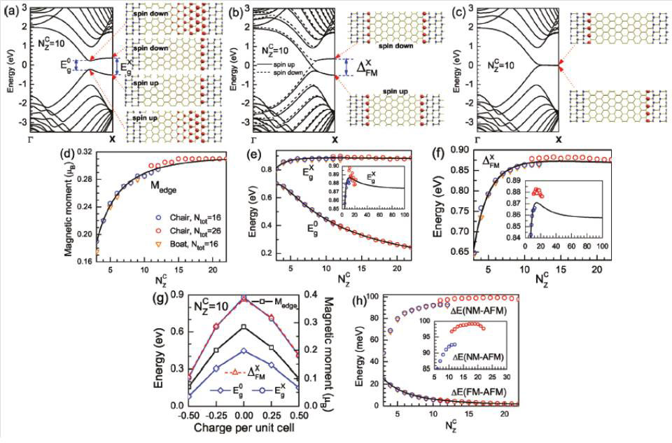 锯齿型边缘GNS的能带结构、磁性以及它们随宽度和掺杂电荷密度的变化关系