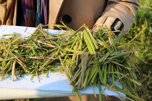 现场收割脆杆水稻与普通水稻的秸秆对比