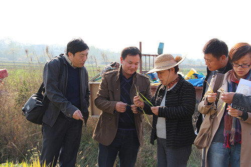 年初,在安徽省农技推广总站的统一部署下,技术生物所在全椒、桐城、巢湖、庐江、芜湖、肥西及颍上县等七个试验点安排种植了150余亩的脆秆水稻示范田,以进一步评价脆秆水稻的地区适应性、丰产性以及抗逆性等特性,肥西丰乐镇就是其中一个试点。研究人员通过大田示范种植发现,脆秆水稻在抗倒伏、产量以及秸秆还田方面均表现良好,适合推广种植。技术生物所通过离子辐照诱变技术研发的脆秆水稻在去年试验成功的基础上,走出精耕细作的试验田,让农民管理种植,在农户家庭实现了粗放经营的大田生产。