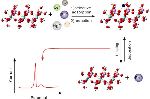 近期,中科院合肥物质科学研究院智能所仿生功能材料与传感器件研究中心973首席科学家刘锦淮研究员和中科院“引进海外杰出人才”黄行九研究员率领的课题组将电化学技术与理论计算模拟手段相结合,深入探讨了纳米结构材料高灵敏度和高选择性响应的内在机制。科研人员巧妙利用不导电的纳米结构材料即片状磷酸锆(a-ZrP:重金属离子吸附剂)作为电极,研究了该材料对水中重金属离子Pb 2+的电化学选择性;同时结合理论计算模拟手段,对此选择性的电化学行为进行了科学的论证。科研人员经过一系列论证表明,纳米结构材料的选择性电化学行为与其选择性的吸附性能之间具有一致性。评审人认为该工作对于揭示纳米材料的电化学行为具有极其重要的科学意义。相关研究成果以全文发表在美国化学会《分析化学》上(Anal. Chem., DOI: 10.1021/ac3037014)。