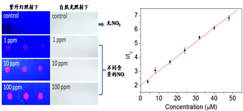 荧光传感试纸的荧光强度与空气中NO2的含量呈现线性响应关系。