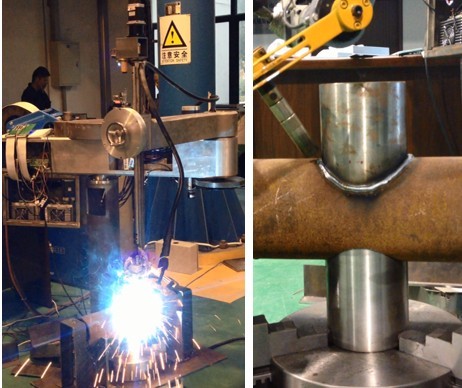 该机器人具有5个自由度,原创性的采用SCARA结构作为焊接机器人主体结构,充分利用了这类机器人结构轻便、响应快以及顺应性好的特点,从而有效提高了焊接机器人的响应速度以及焊枪定位精度。此外,项目组自主研发出对象级路径规划自学习编程技术,通过采集手动控制焊枪沿焊缝移动的轨迹信号,自动记忆并生成控制程序,并设计了位置偏移检测模块,实现焊接参数实时可调,进一步提高了焊接的质量和效率。通过采用离合器和重力平衡机构使得示教操作变的简单易行。