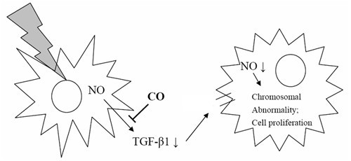 低浓度一氧化碳保护未受辐射细胞作用模式图