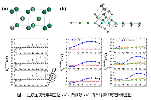 钨以其高熔点、低溅射、不与氢发生化学反应及氢滞留极低等特性被视为是最有前景的面向等离子体候选材料。然而,钨存在室温脆性、再结晶脆性、辐照脆化以及高温时强度低等不足,限制了其在聚变堆中的应用。合金化被认为是提高钨基材料性能的一种重要途径。在其服役过程中,钨及其合金将会遭受高能中子辐照,在材料内部产生大量缺陷,如空位,自间隙等。合金元素将与辐照缺陷相互作用,一方面改变材料中合金元素的扩散性质和聚集形态,另一方面改变辐照缺陷的本征演化规律,进而改变材料的性能。此外,中子辐照会引入大量的嬗变元素以及加工过程也不可避免在材料中遗留下一些杂质,这些嬗变元素和杂质与辐照缺陷相互作用也会对材料的性能产生影响。因此,溶质元素与辐照缺陷间相互作用的研究显得尤为重要。