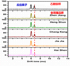 离子俘获迁移谱检测混合酸以及各种品牌食用醋中乙酸的谱图