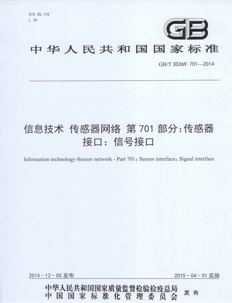 日前,国家标准化管理委员会发布2014年第27号公告,由中国科学院合肥物质科学研究院(以下称简合肥研究院)牵头承担研制的国家标准《信息技术 传感器网络 第701部分:传感器接口 信号接口》(以下称简信号接口标准)已通过国家质量监督检验检疫总局、国家标准化管理委员会批准正式发布,标准号为GB/T 30269.701-2014。信号接口标准作为国家物联网基础标准之一,规定了传感器与传感节点信号接口的信号类型、电气参数及表述格式,旨在方便传感器和传感节点之间的系统集成,实现软件复用。