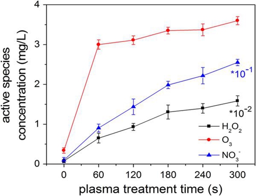 图1等离子体诱导蛋白溶液中长寿命活性基团的成分和浓度变化
