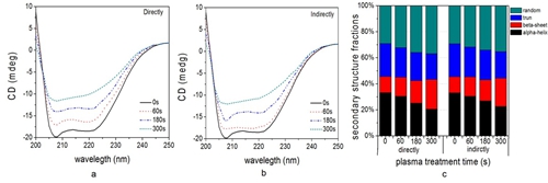 图2 等离子体不同处理方式蛋白酶的二级结构变化情况