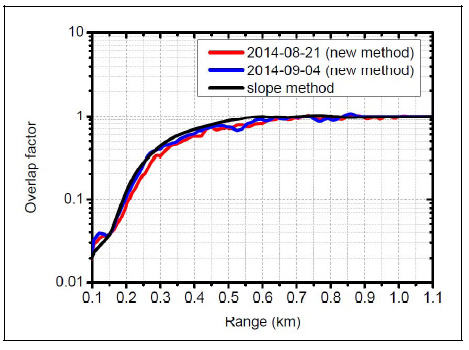 王珍珠等研究人员提出新方法——基于CCD侧向散射激光雷达数值反演方法和米散射雷达Fernald反演方法获得的粒子后向散射系数进行迭代运算,实现几何因子的提取,从而解决了垂直放置的激光雷达低层信号校正问题。实验时,米散射激光雷达垂直指向,CCD相机在一定的距离处放置拍摄激光光束。由于CCD侧向散射激光雷达技术不存在几何因子的问题,因此可以获得精确的粒子后向散射系数廓线,迭代运算之后,获得米散射激光雷达的几何因子。该方法与斜率法探测几何因子进行比较后得出,该新方法确定的几何因子是可靠的,可用于实际激光雷达探测实验中。