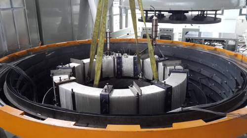 外超导磁体线圈共由七个线圈构成,分别为A、B、C和D1-D4,前期经过绞缆、穿管、绕制等一系列环节后,进入热处理环节。按照设计要求,共需热处理六次,每次需时22-25天,整个热处理工作自2015年1月12日开始,至2015年9月15日结束,共历时8个月。通过对随炉热处理样品的测试,六次热处理中线圈的临界电流密度、剩余电阻率值等关键指标均达到设计要求。