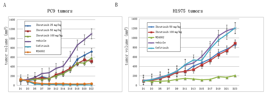 依鲁替尼减缓EGFR突变肿瘤在小鼠体内的增长
