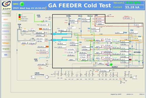 近日,等离子体所为美国通用原子公司(General Atomics,GA)研制的用于ITER中心螺管线圈测试的大型超导馈线系统成功通过全电流55kA稳态以及各个变量控制的运行测试。这标志着等离子体所历时两年,完全自主研发的这套超导系统的各项关键指标均满足美方要求,多项指标处于国际领先地位。来自美国GA的Piec.Zbigniew博士、Schaubel.Kurt博士、Lloyd.Samuel博士三位专家现场参加并见证了此次测试全程。