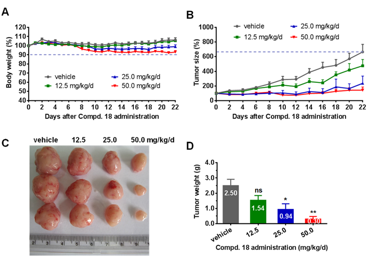 CHMFL-FLT3-122阻滞FLT3-ITD突变肿瘤在小鼠体内的增长