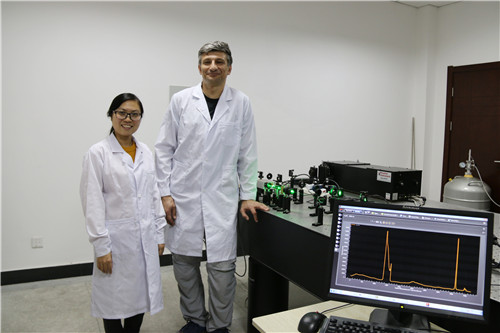 格列戈良茨研究员与刘晓迪博士进行氢的实验测量