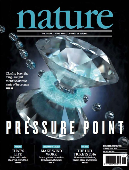人们相信,处在元素周期表中的第一位的氢元素在足够大的外界压力条件下,分子键会断裂, 从而形成一个新的金属原子态,而这种原子态有可能具有超过室温的超导电性,因此是近一个世纪以来的重大科学前沿问题。由中国科学院固体物理研究所研究团队提供了最新的实验证据,推测出了这种新的原子态的存在。相关结果于1月7日在国际学术期刊《自然》在线发表,并以“压力点”为标题被选做封面。该工作由英国爱丁堡大学和固体所共同完成,固体所为第二完成单位。