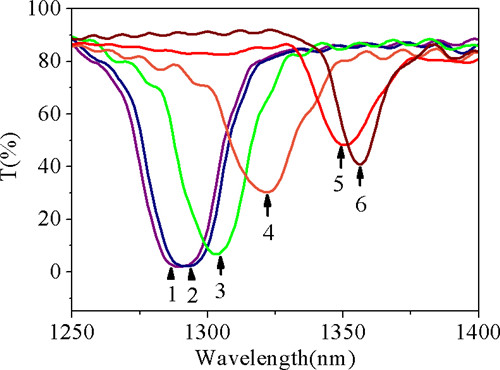 图1 多孔氧化铝光子晶体吸附不同浓度乙醇后带隙位置的变化