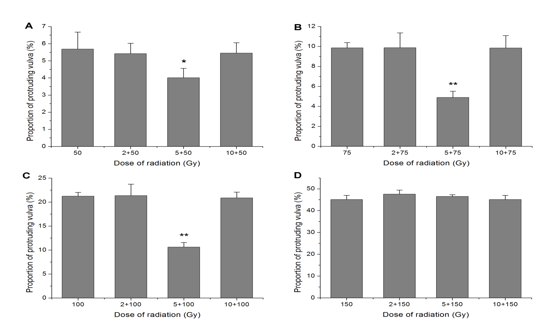 图 2. 诱导线虫阴门细胞辐射适应性反应的gamma剂量组合。