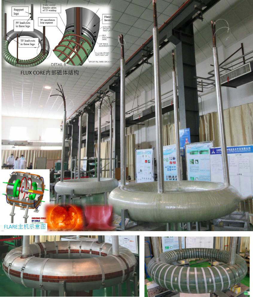 根据项目协议,等离子体所需为FLARE项目研制出两套高磁通耦合场线圈系统(FLUX CORE),用于装置的磁重联等离子体位型的成形及平衡。该项目由等离子体所装置总体研究室承担总体设计,合肥聚能电物理高技术开发有限公司承担加工制造任务。