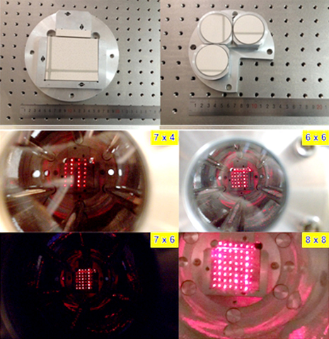 图2 Chernin型光学多通池实物照片及不同吸收光程光斑分布图