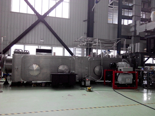 高温超导电流引线是ITER大型超导磁体馈线系统采购包中的核心部件之一。涉及超导、低温、真空、机械工艺、测控、电源等多学科的复杂系统项目。ITER PF 52kA高温超导电流引线由装置总体研究室负责设计、聚能公司负责加工制造。其设计涉及多学科知识,需要满足深低温、高真空、高电压绝缘、低热负荷、低超导接头电阻等各方面工作要求,设计计算挑战大,制造工艺复杂,质量等级要求高(ITER质量等级1级部件)。该研发团队成功解决了精确温控真空钎焊、超导材料多温度梯度焊接、异种性能材料电子束焊接、复杂换热器与长行程薄壁套筒加工、精密装配等关键技术问题。在ITER国际组织和其委托的第三方BV公司的全程现场质量见证下,装置总体研究室与聚能公司相关技术、质量控制人员严格控制每个环节过程质量,历时近一年完成部件的制造和装配工作,于6月上旬运达低温超导测试大厅进行低温电性能测试准备工作。