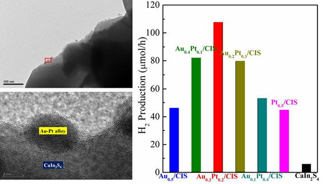 目前全球面临能源危机和环境污染的严峻挑战,发展高效、清洁的可再生能源技术已成为各国政府的重要目标,利用太阳能来光催化分解水制氢有望成为解决能源危机的有效途径之一。近日,应用技术研究所田兴友研究员领导的课题组与中国科学技术大学高琛教授课题组合作,在金属/半导体光催化纳米材料结构设计合成研究领域取得新进展,获得了性能显著改善的光解水制氢催化剂。该成果以“Au–Pt alloy nanoparticles site-selectively deposited on CaIn2S4 nanosteps as efficient photocatalysts for hydrogen production”为题发表在J Mater Chem A杂志上(2016,4,12630-12637)。