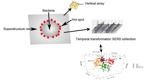 图1:柱状纳米阵列/分立式等离激元超结构结合三维PCA技术分类识别革兰氏阳性菌
