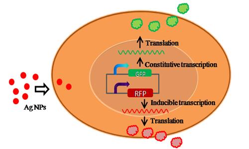 双荧光报告基因生物传感器检测纳米银生物毒性的原理