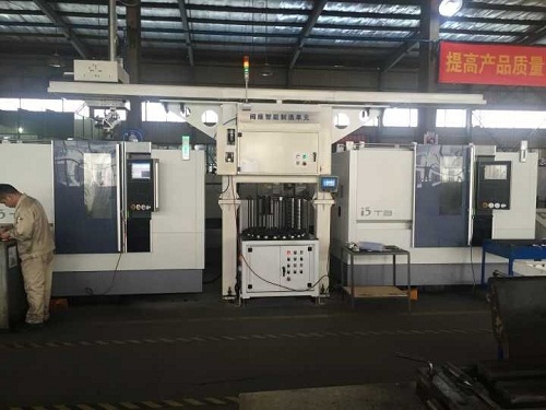 桁架机器人数控加工智能单元采用1套桁架机器人配2台智能机床的自动化加工方案,实现自动上下料、翻面、吹屑等功能,利用现场工控机及软件系统,实现对实时状态数据的监控,同时采用总线架构和预留接口,有良好的扩展兼容性。柴油机气门摩擦焊屈服强度自动化检测设备(更名为:双金属气阀强度智能检测单元)由双桁架机械手、伺服电缸、旋转机构、液压站、传输机构等组成,可将双金属气阀在盘部顶弯以检测摩擦焊的屈服强度,并预留后期扩展接口。