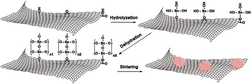 图2 基于石墨烯/SnO2复合材料的电导型敏感纳米材料制备原理图