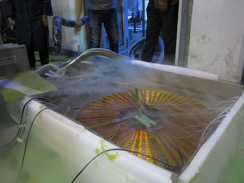5月5日,等离子体所一室与中国电力科学研究院、北京电力经济技术研究院合作,自主成功制备螺旋内冷堆叠扭绕型复合化YBCO储能线圈试验件,通过500A临界电流性能测试。测试结果表明,在液氮迫流冷却和浸泡的环境下,超导线圈临界电流为630A,超过目标要求500A。并且随着运行温度的下降,临界电流还有进一步大幅提升的空间。